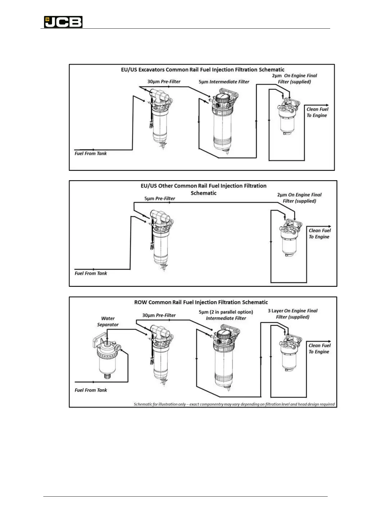 Figure 3: Example fuel filtration schematics for common rail fuel injection systems