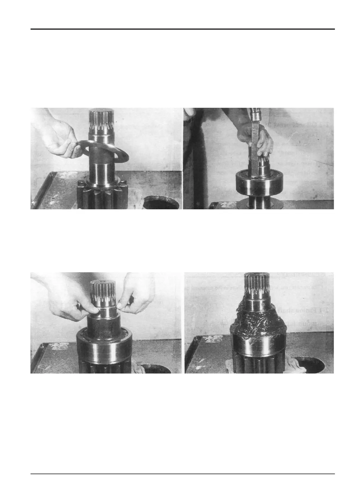 3 Mount collar 59 and put snap ring 60 in position. Take