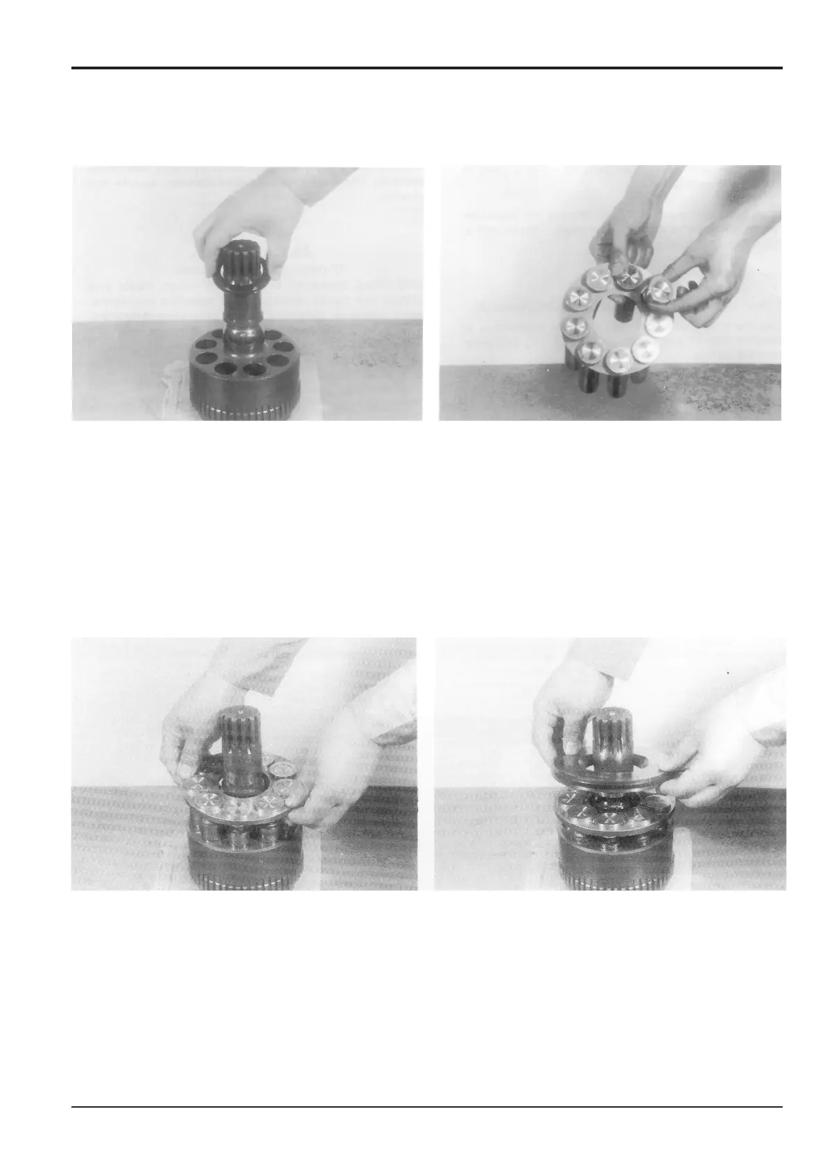 3 Position the piston assemblies 8 into the holes of