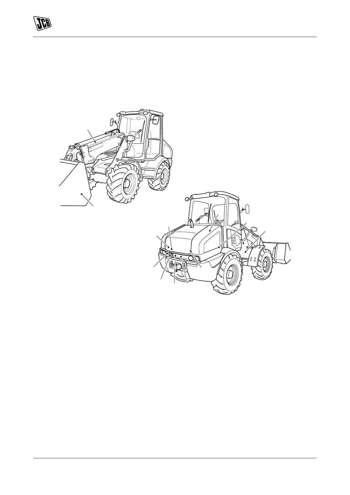 E Articulation lock F Engine oil filler