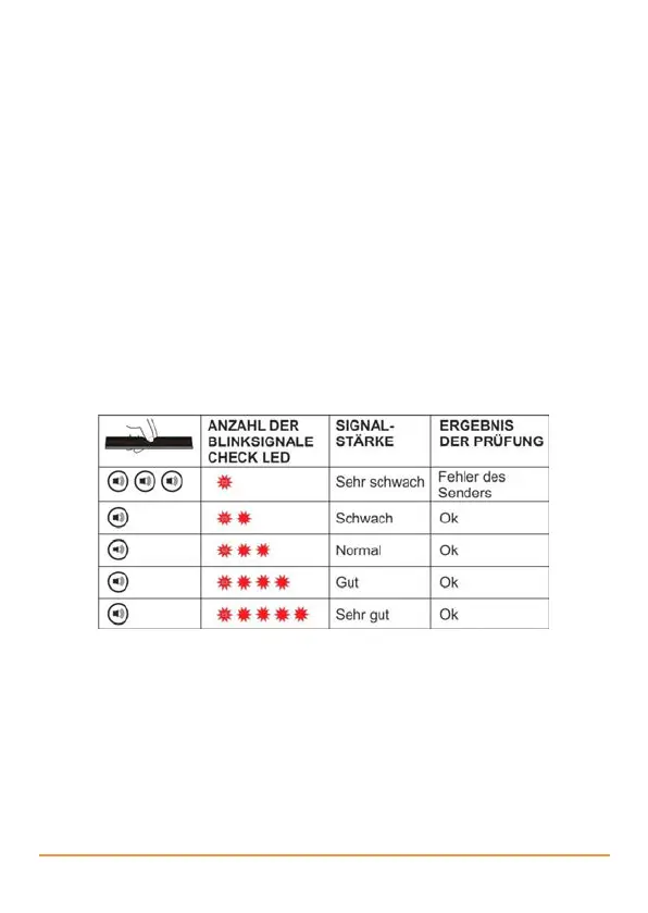 Prüfmodus zu aktivieren. Die Check LED leuchtet und es ertönen vier Pieptöne.