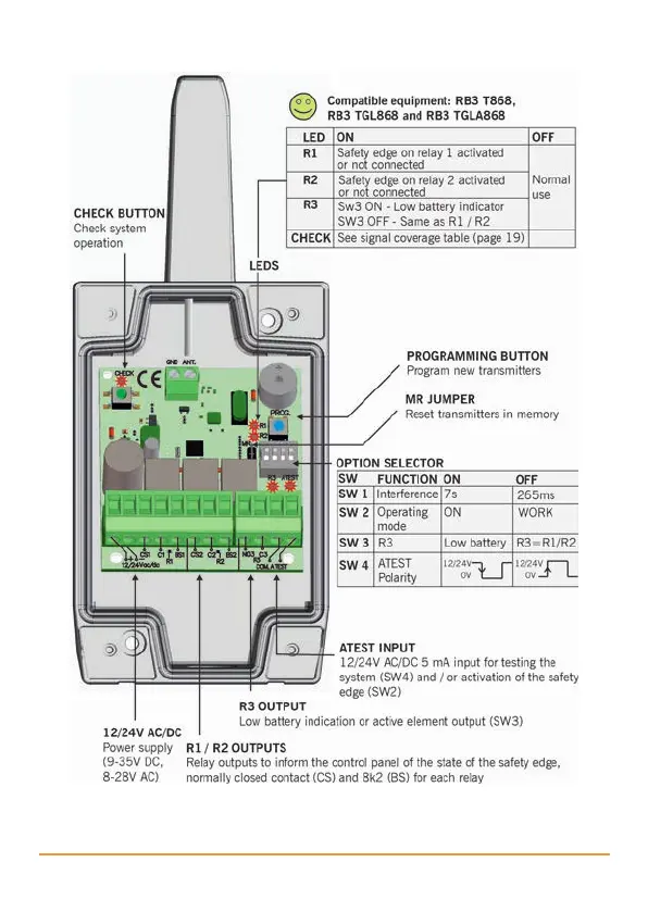 jcm-tech RB3 T868 - Receiver RB3 R868 Details; LED Indicators and Controls; Option Selector Settings