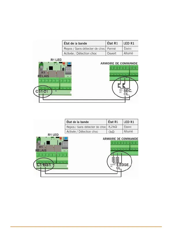 Exemple de connexion R1 à l’unité de commande avec entrée pour bande de sécurité