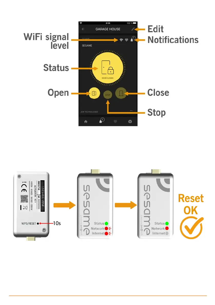 JCM Technologies KEEROLL - SESAME Maintenance and LEDs; Resetting the SESAME Device; SESAME LED Status Indicators