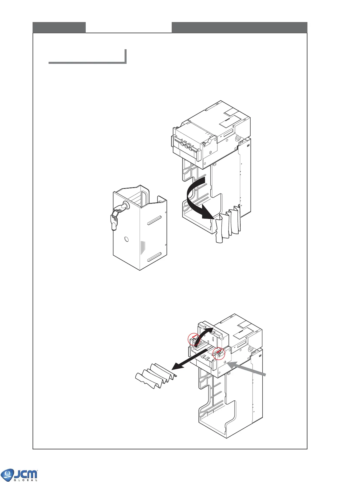 8-1 When a bill is jammed near the entrance of the stacker box,