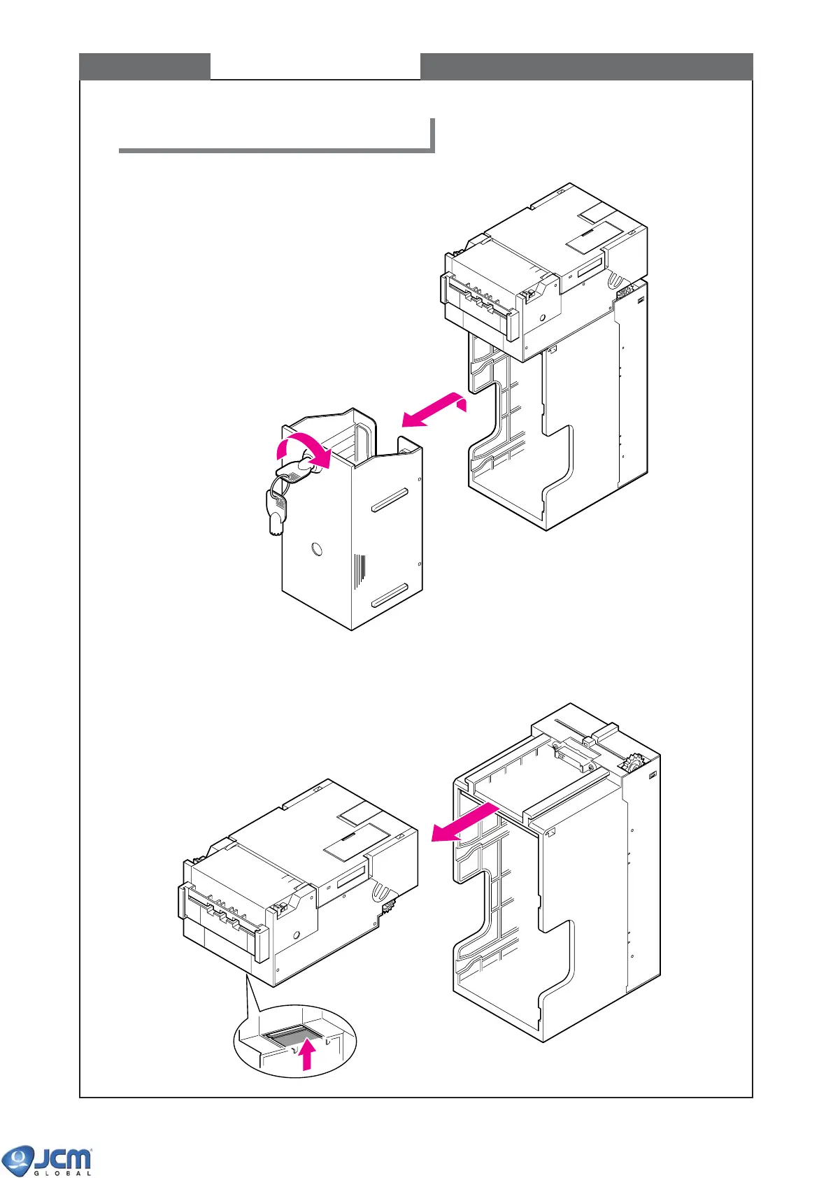 1-1 Unlock stacker box and pull it out from stacker unit.