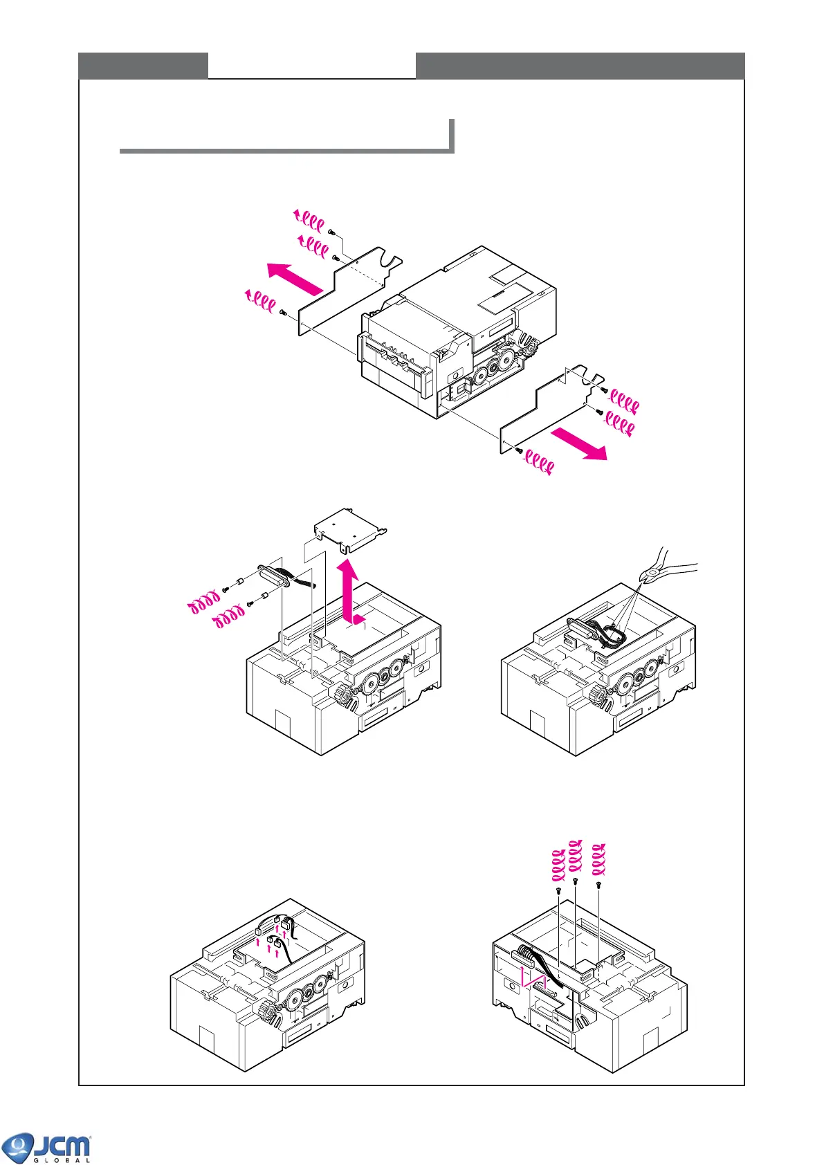 3-1 Remove the left-side cover from the acceptor head unit, and then remove the right-side cover.