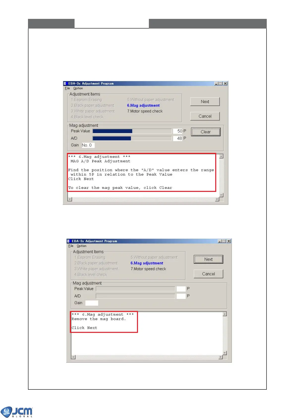 remove the mag board from the EBA-30/32/34 unit and press [Next] button.