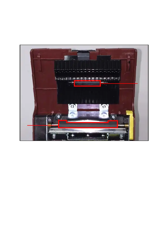 9. Use a Cleaning Wipe to wipe and clean the Platen Roller (Figure 17 a).
