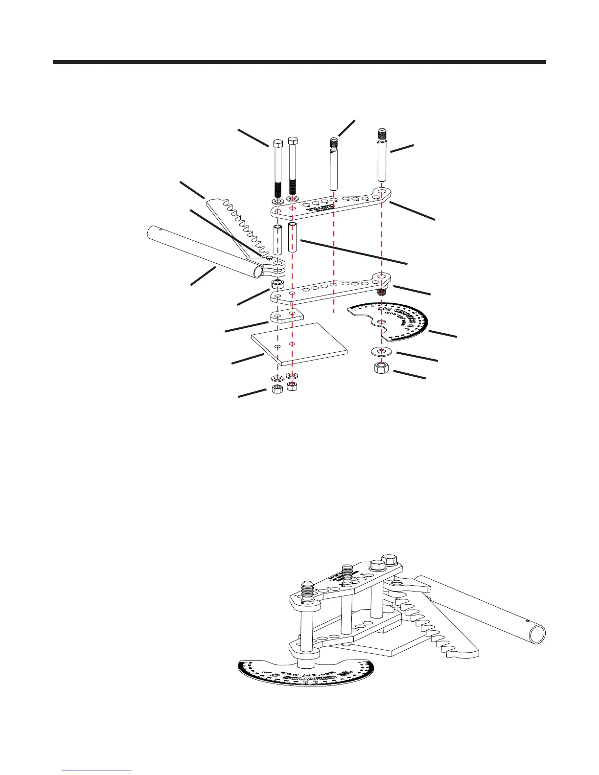 E) InstalltheUpperFrameLink,Ratchetassemblyand1"SpacerTubesasshownabove.Handtightenthebolts.