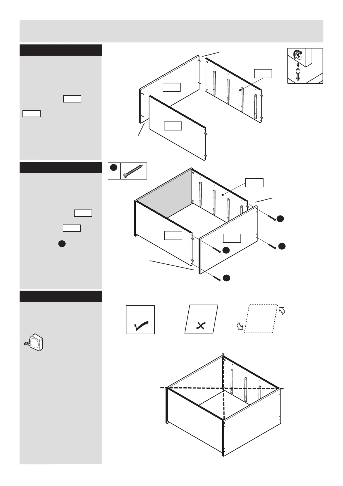 JD Williams Aspen - Cabinet Frame Assembly Steps 6-7; Step 6: Connect Top Panel to End Panels; Step 7: Connect Bottom Panel to End Panels