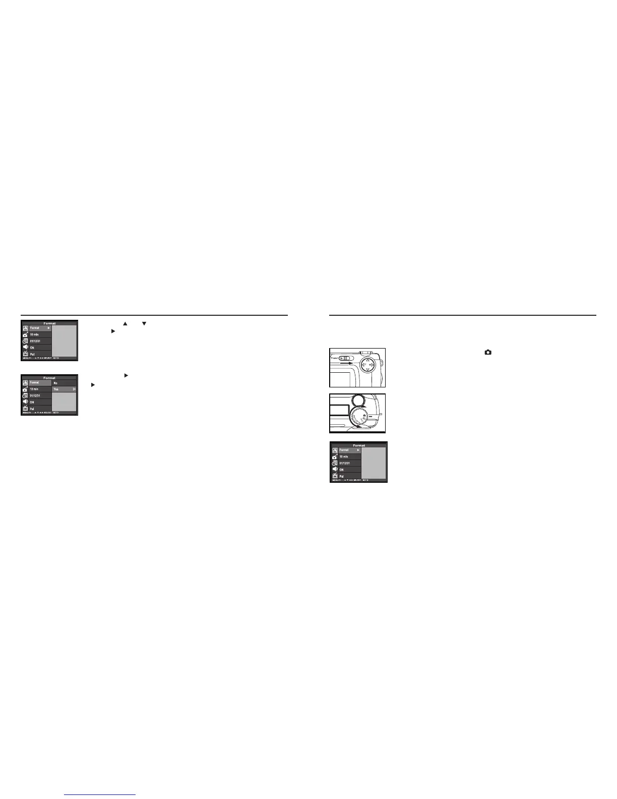 • After formatting the CF card, the LCD monitor returns to the setup mode