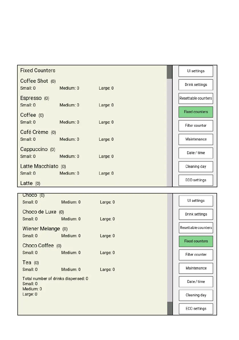 In the Fixed Counters menu you can view the total number of drinks dispensed since the dispenser was