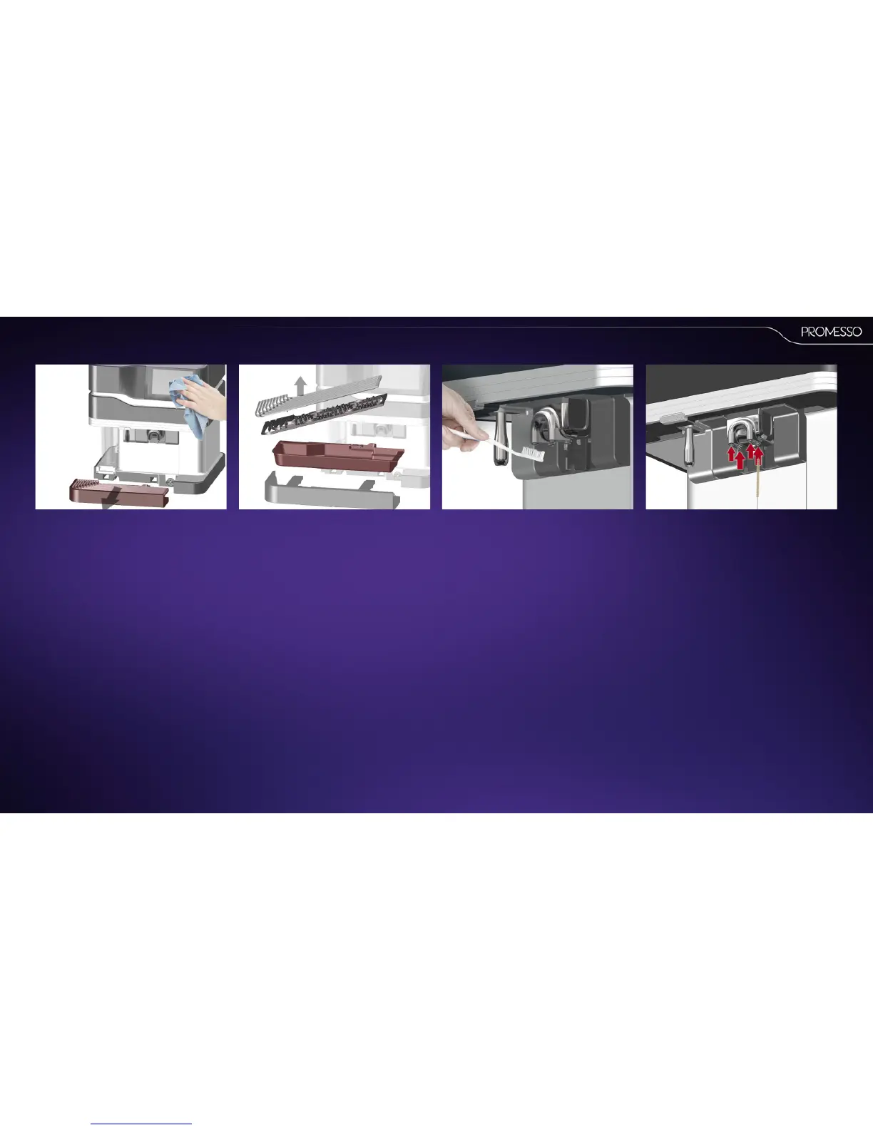 • Empty/clean the drip tray and grid • Clean the coee/milk outlet with the includ-