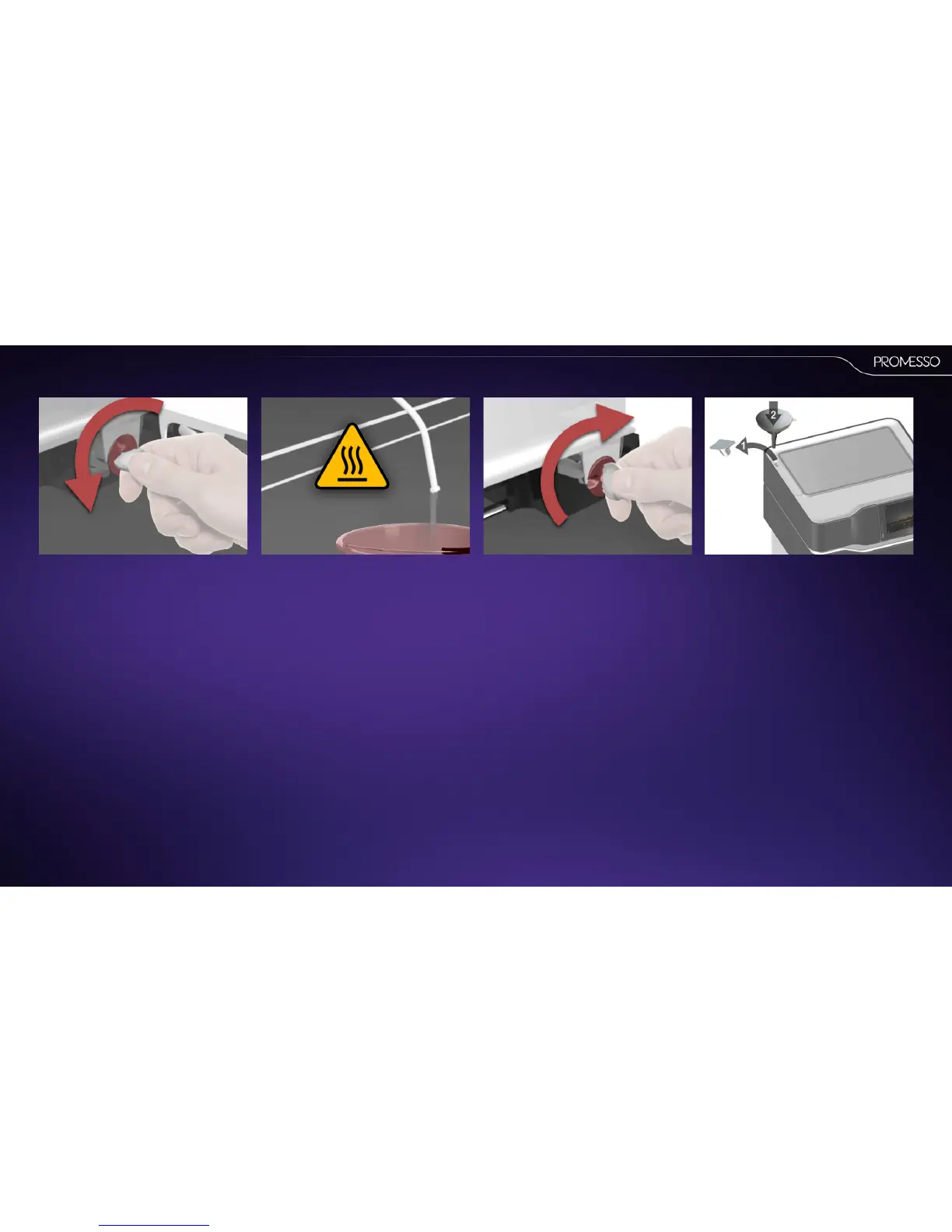 • Turn the drain valve counterclockwise to open. About 2 litres of hot water will be drained from