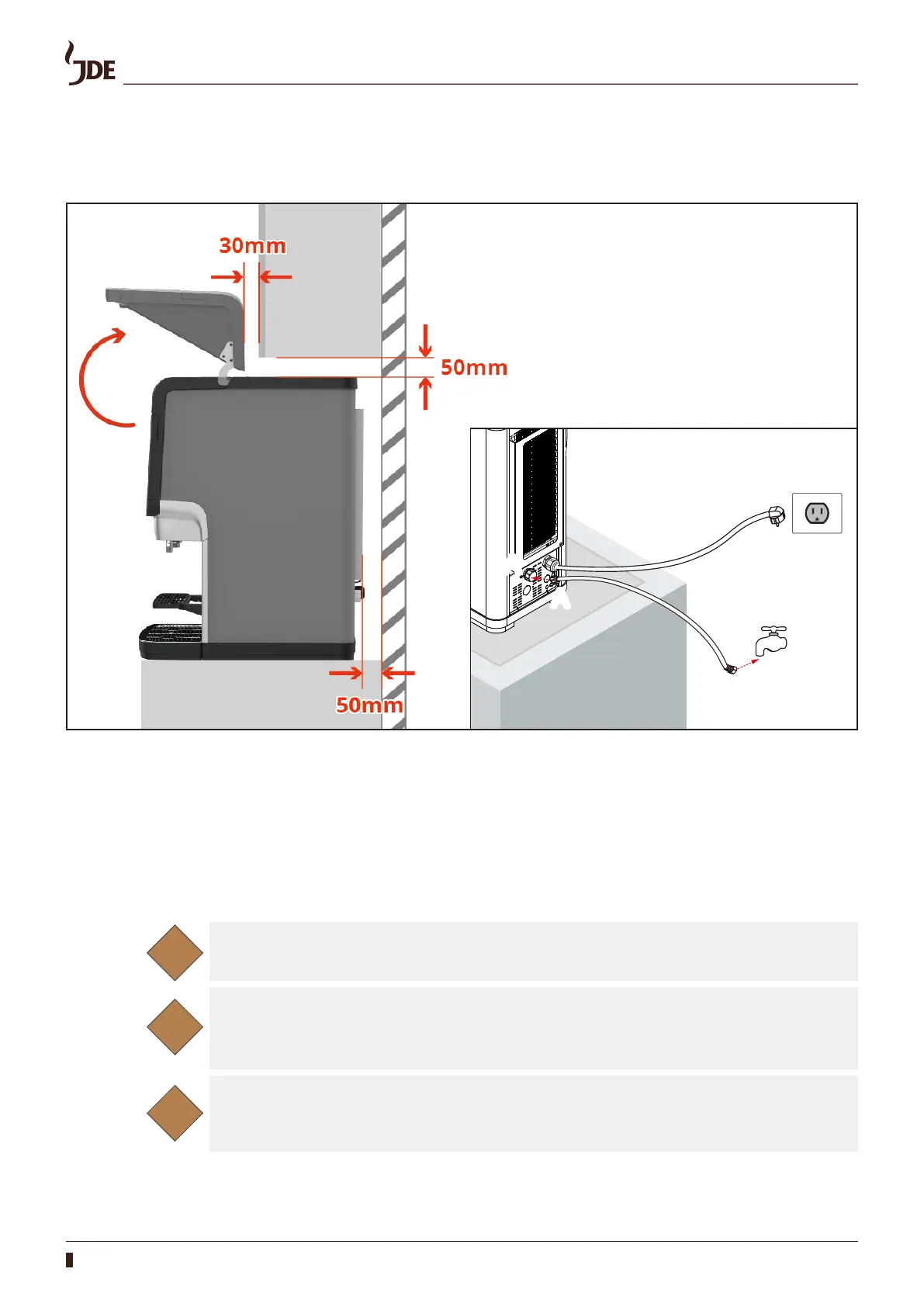 The electrical connection to the machine (wall socket), must contain earth leakage