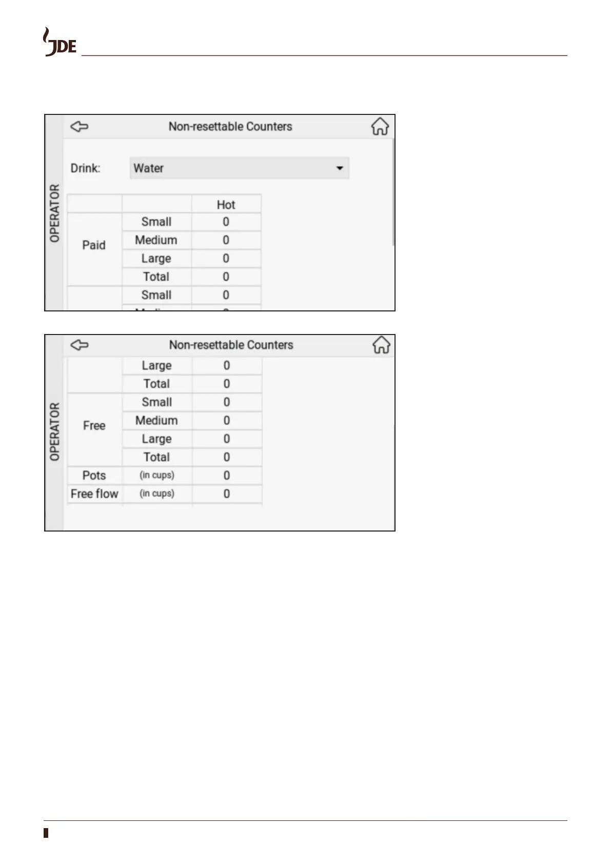 In the Non-resettable Counters menu you can read the drinks dispensed by selecting each drink