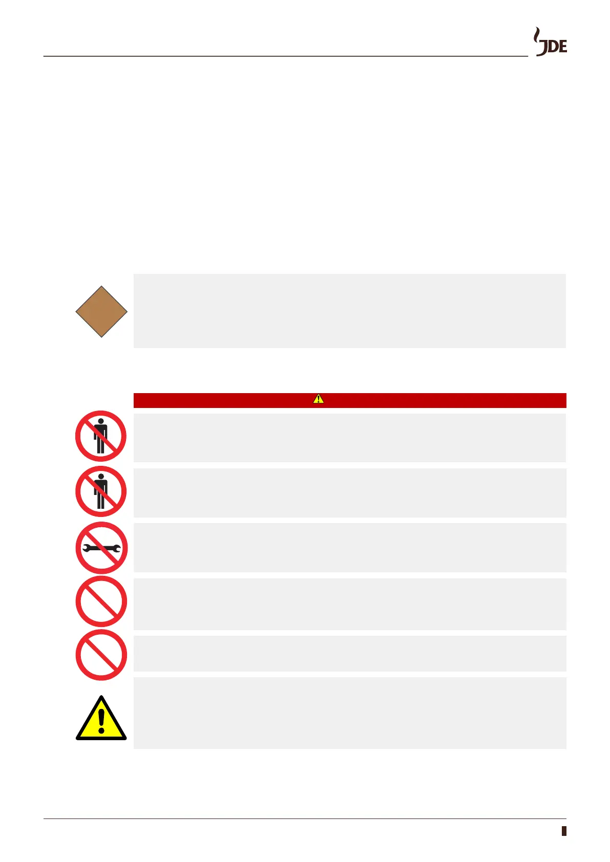 Do not make any changes to Coee Machine and its accessories without JDE’s