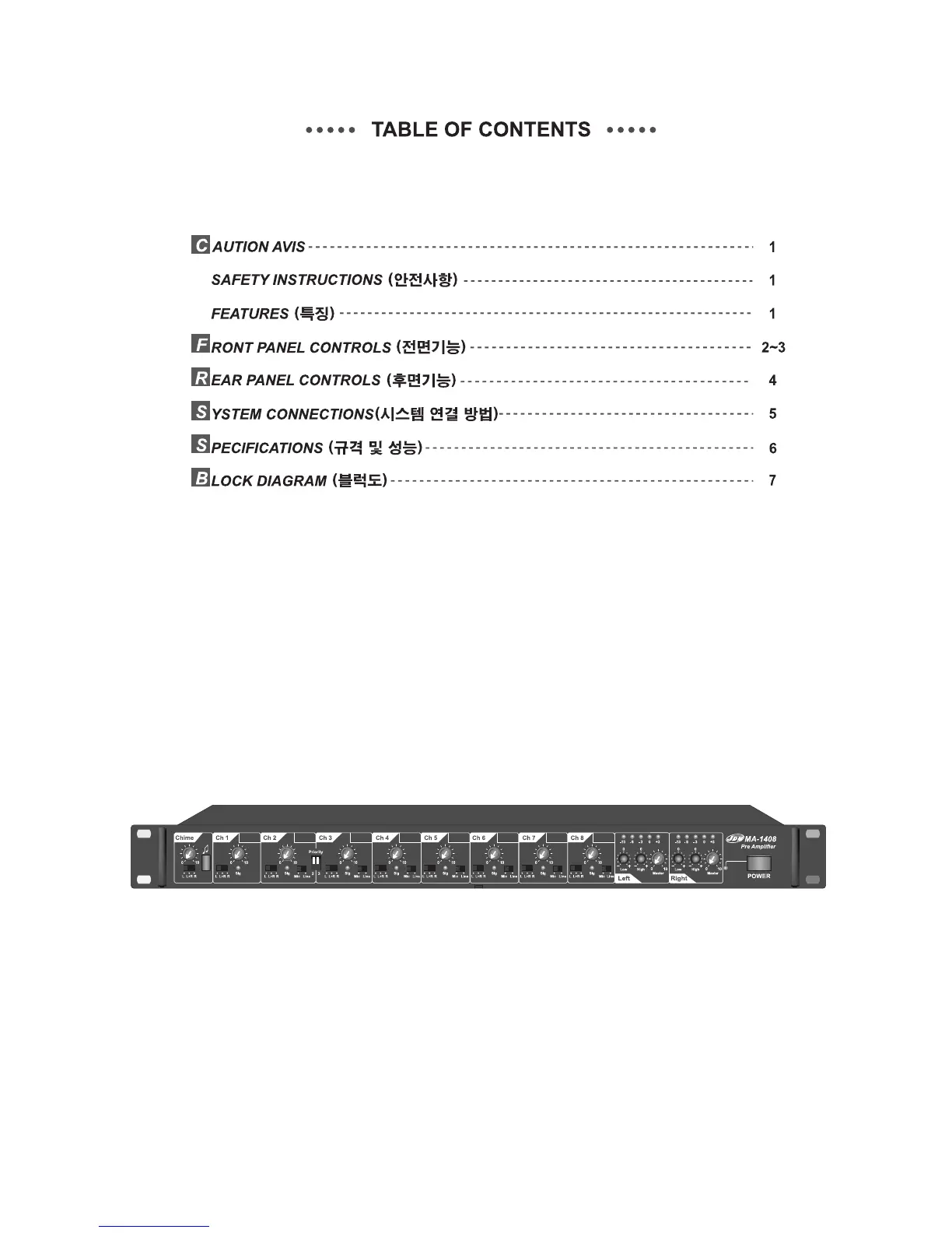 JDM MA-1408 - Table of Contents