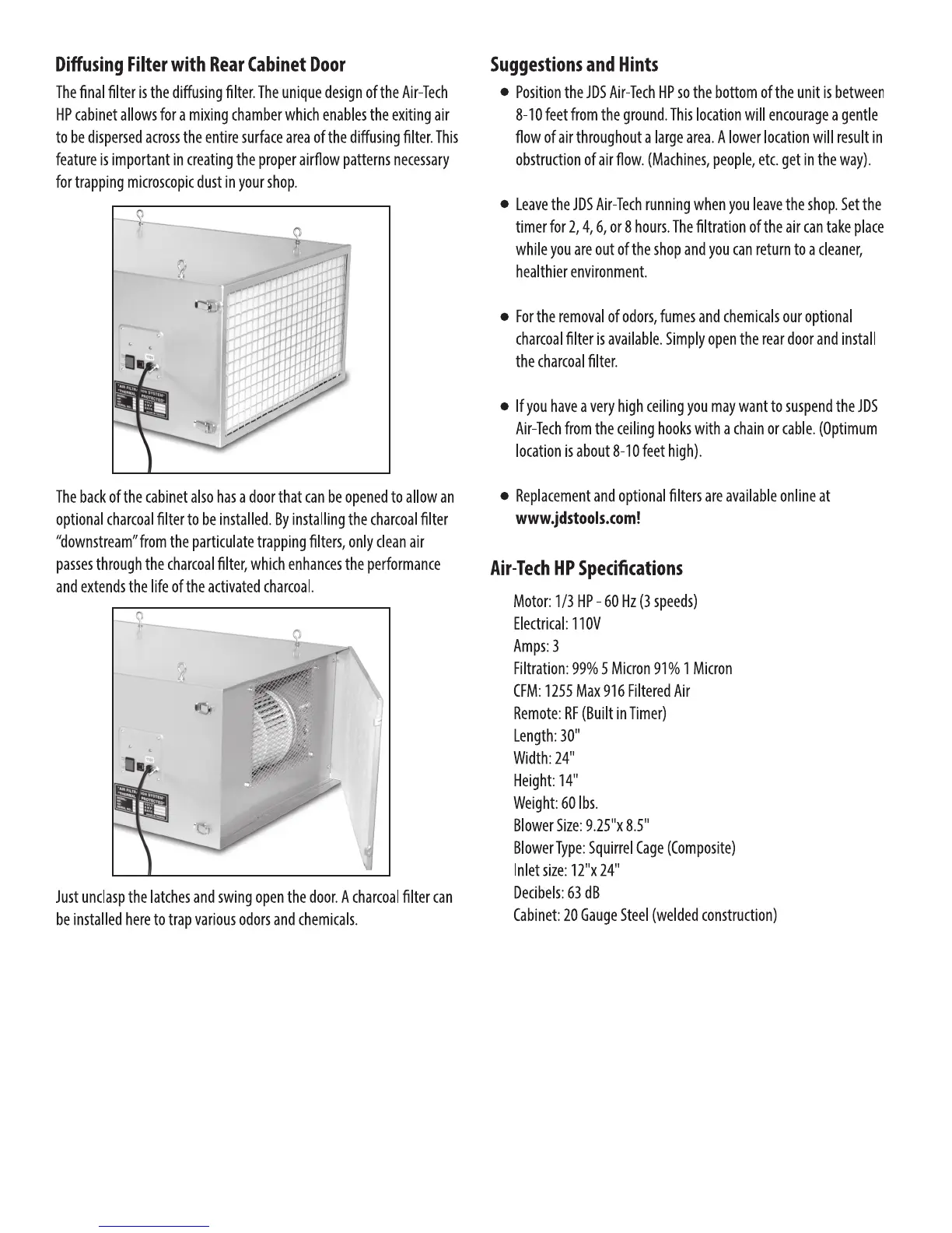 JDS AIR-TECH HP - Diffusing Filter with Rear Cabinet Door; Air-Tech HP Specifications