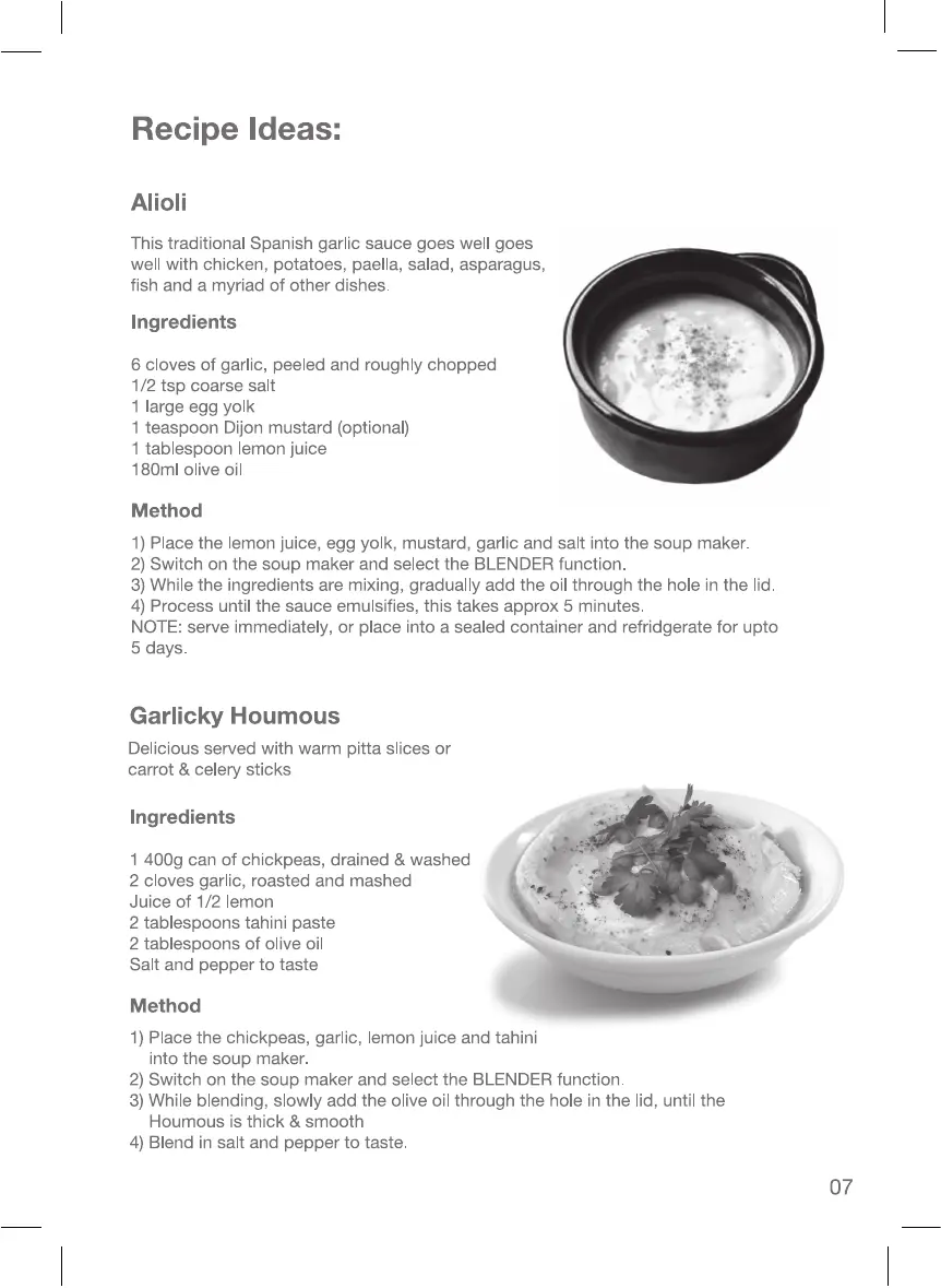 JDW GCHS-01 - Recipe Ideas; Alioli; Garlicky Houmous