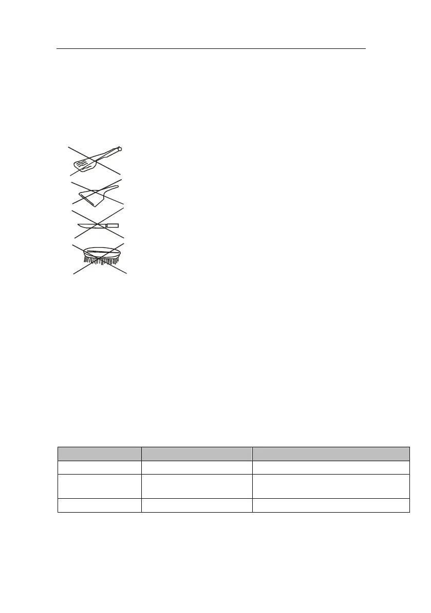 bristles or sharp objects such as knives or spatulas for cleaning the