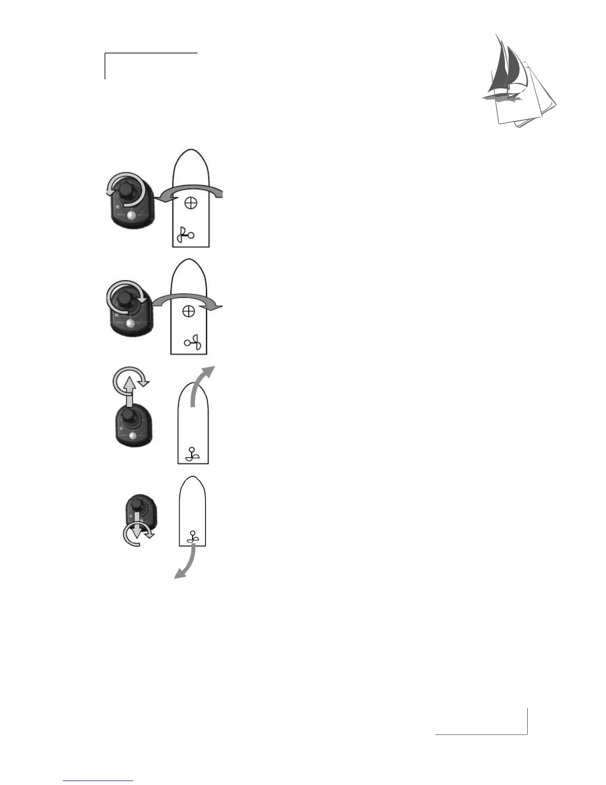 The boat turns to port (virtually pivoting around its keel). Forward or