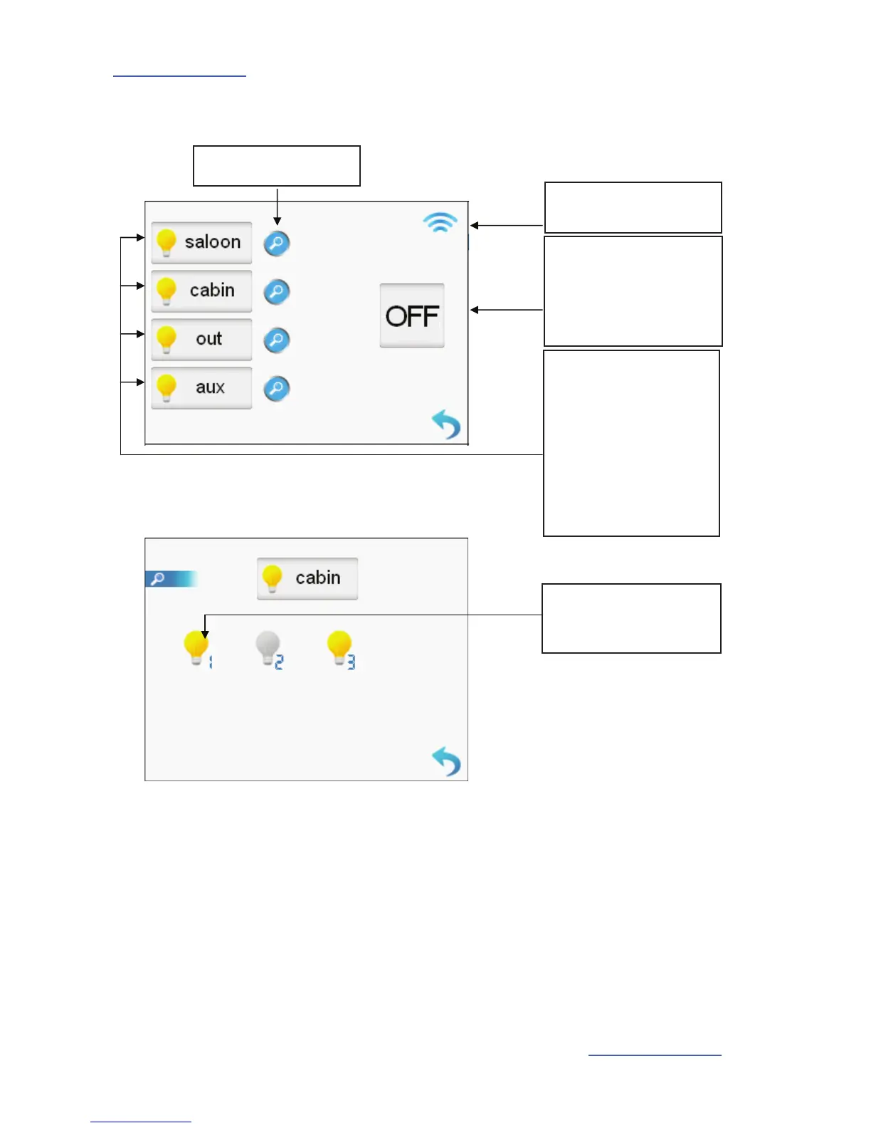 lighting zones sub-menu:
