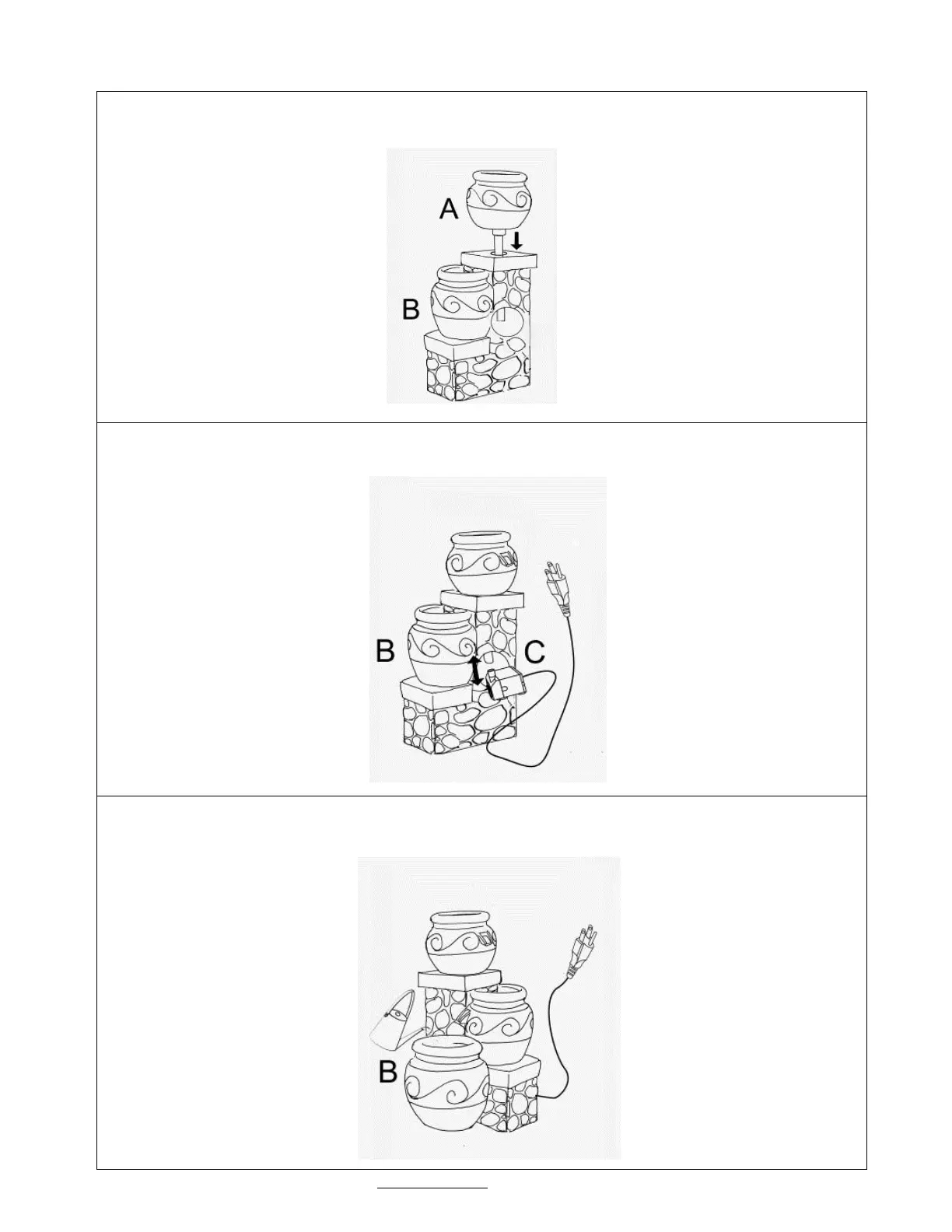 Fill the basin (B) with clean water, making sure the pump (C) is fully submerged.