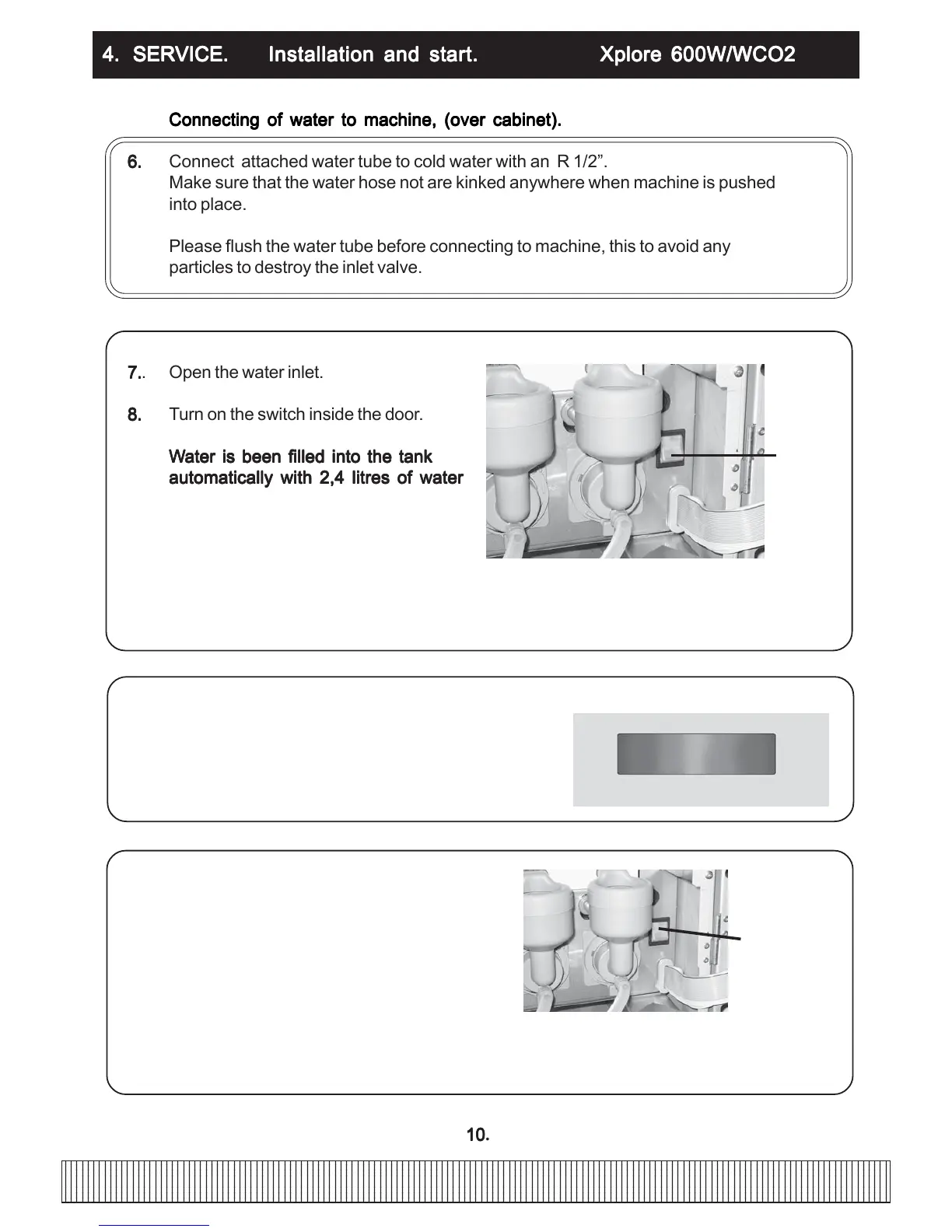 Connecting of water to machine, (over cabinet).Connecting of water to machine, (over cabinet).