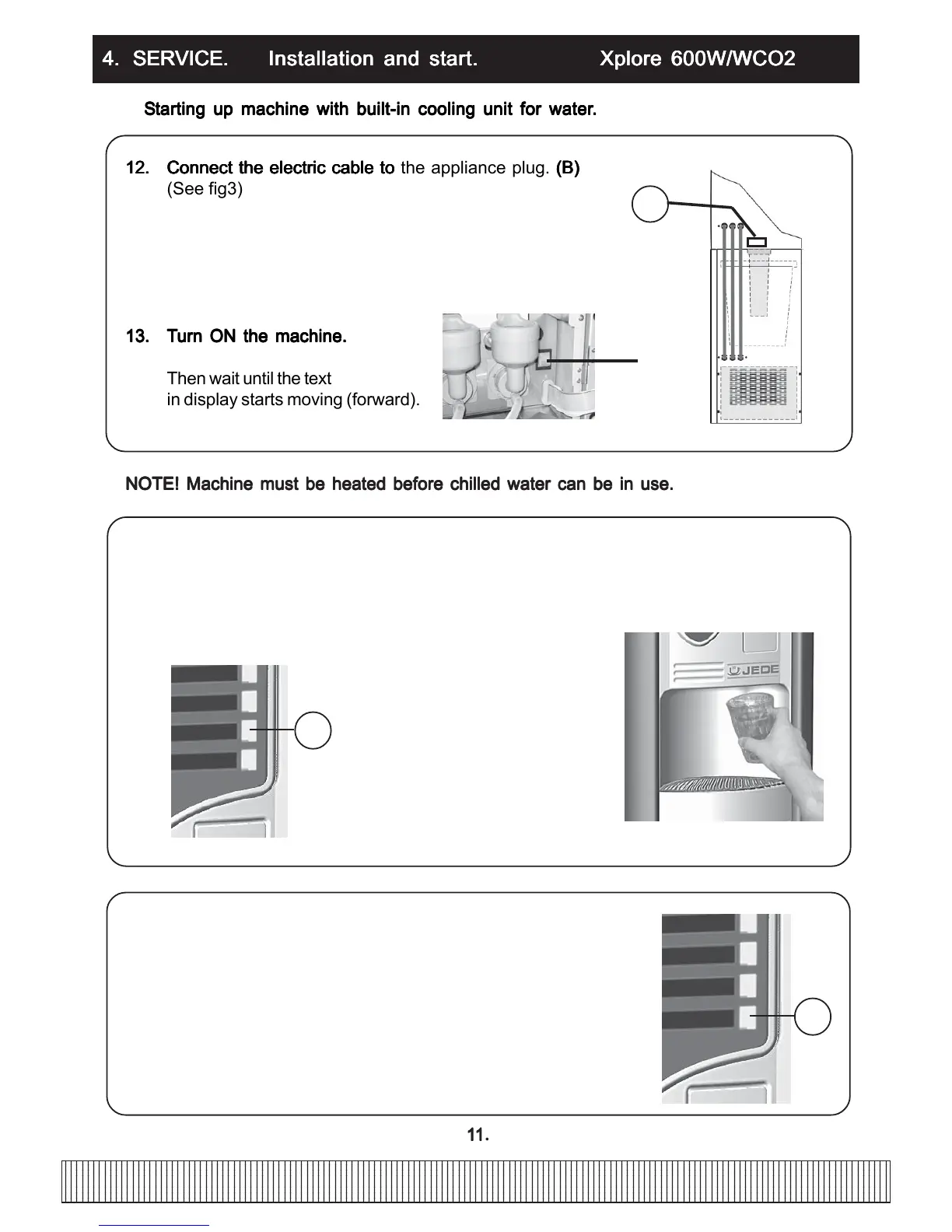 NOTE! Machine must be heated before chilled water can be in use.NOTE! Machine must be heated before chilled water can be in use.