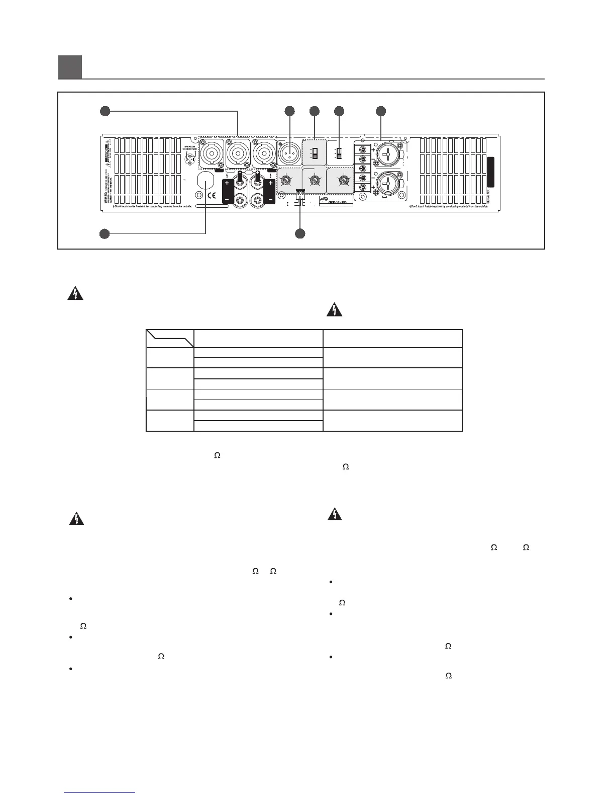 Turn the amplifier off before touching the output connection.