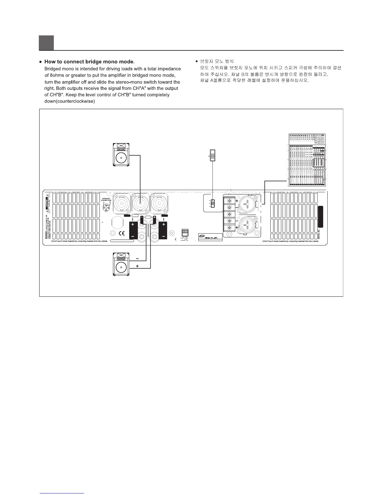 Jedia L3.6X - Bridge Mono Mode Connection; Bridge Mono Setup; Bridge Mono Level Control