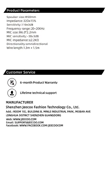 Jeecoo J100 PRO - Product Specifications; Customer Support Information; Warranty and Technical Support