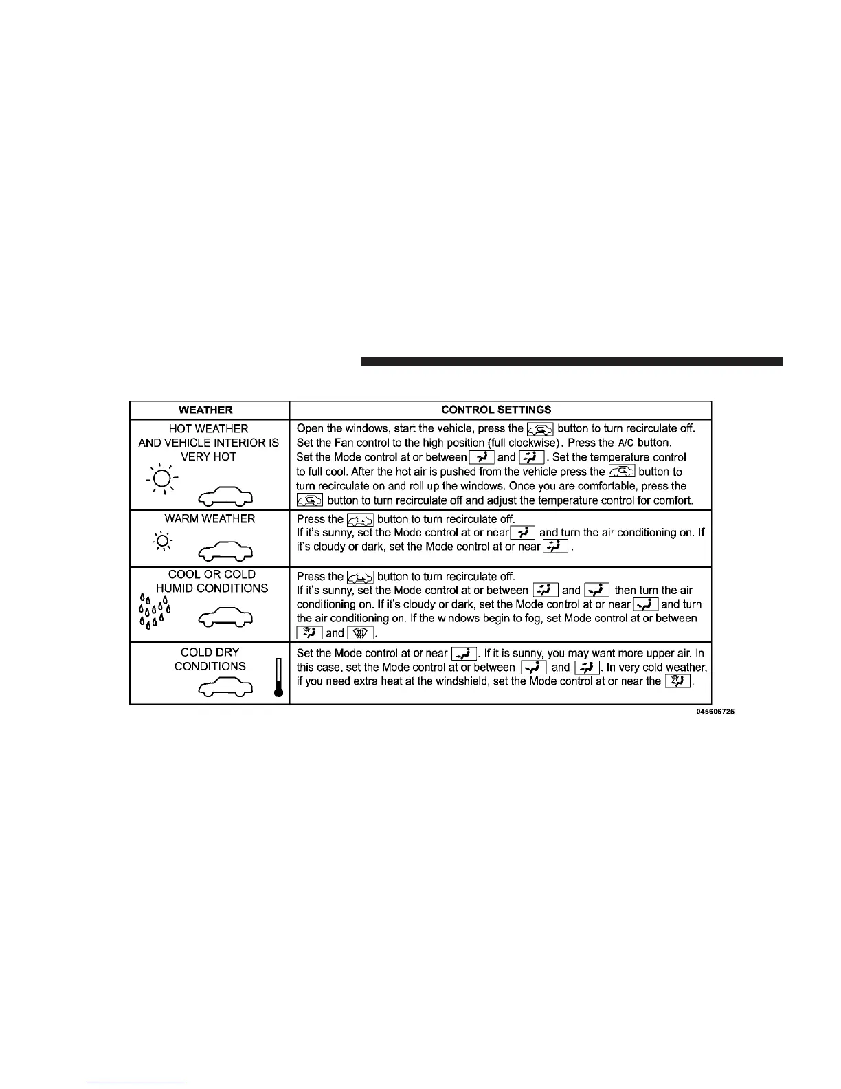 Control Setting Suggestions for Various Weather Conditions