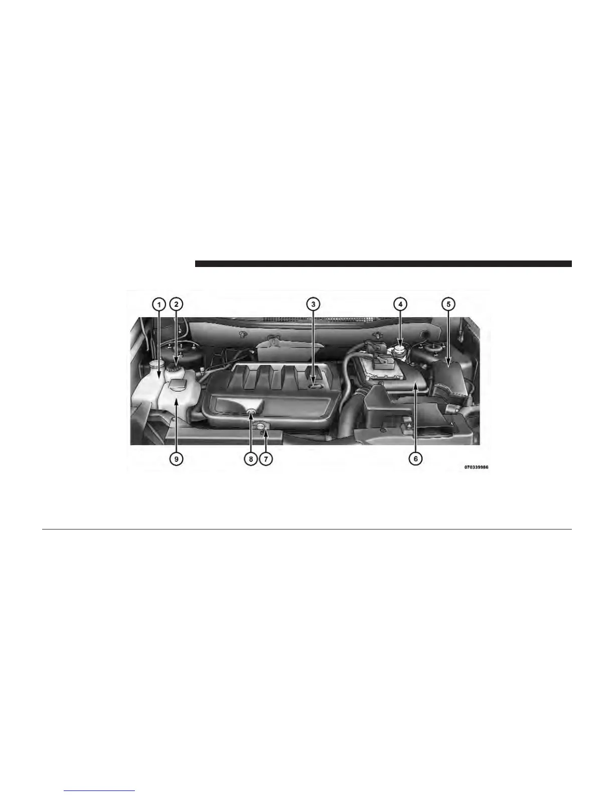 2 — Power Steering Fluid Reservoir 7 — Coolant Pressure Cap