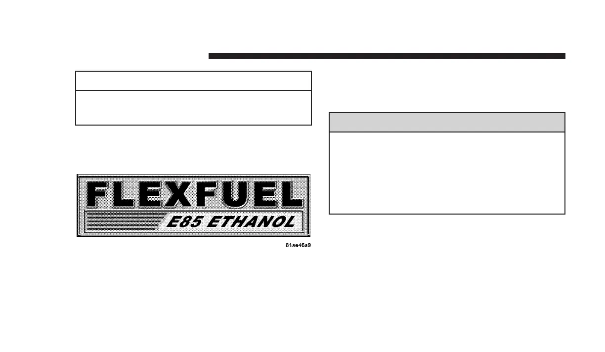 tank. Do not use E-85 as a cleaning agent and never