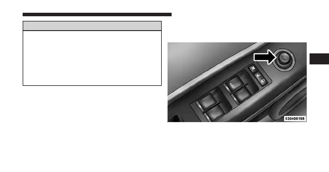 The power mirror controls are located on the driver’s