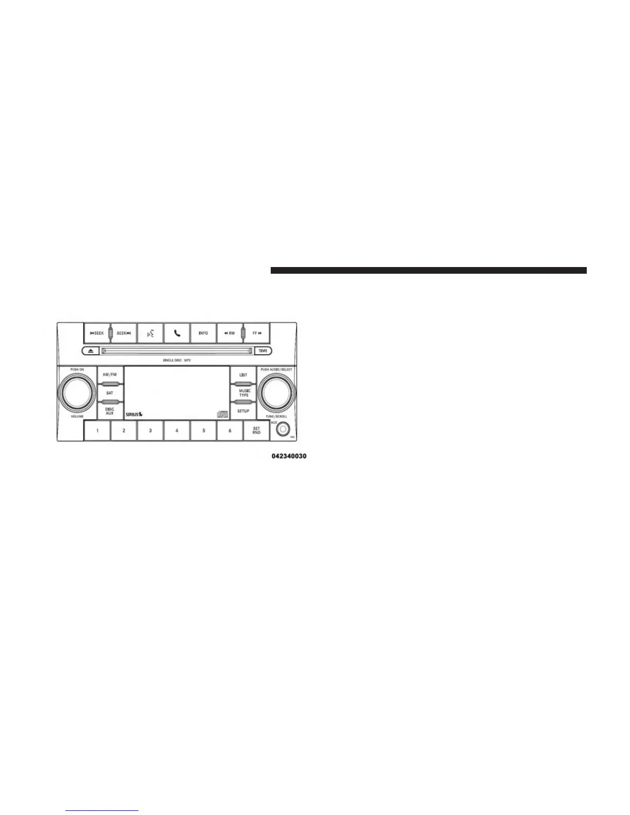 Uconnect® 130 WITH SATELLITE RADIO Operating Instructions — Radio Mode