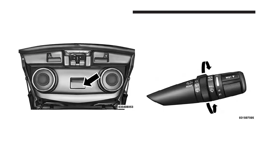 The rear wiper/washer is controlled by a rotary switch