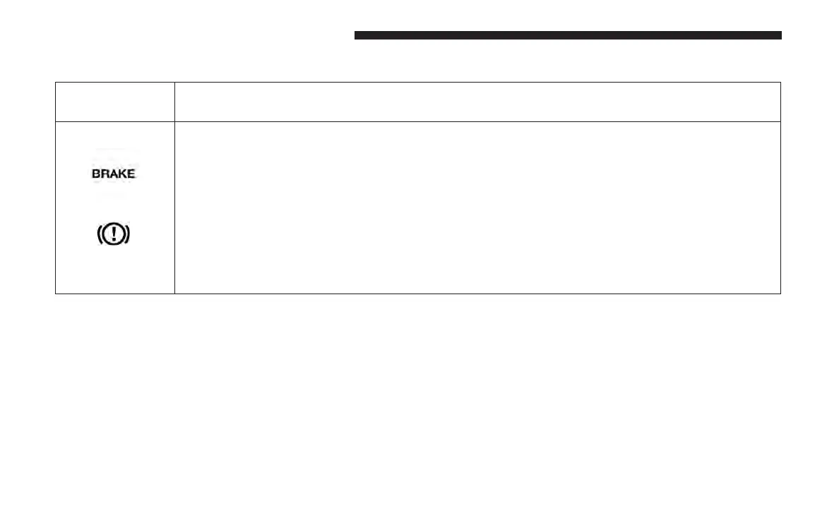 This light monitors various brake functions, including brake fluid level and parking brake appli-