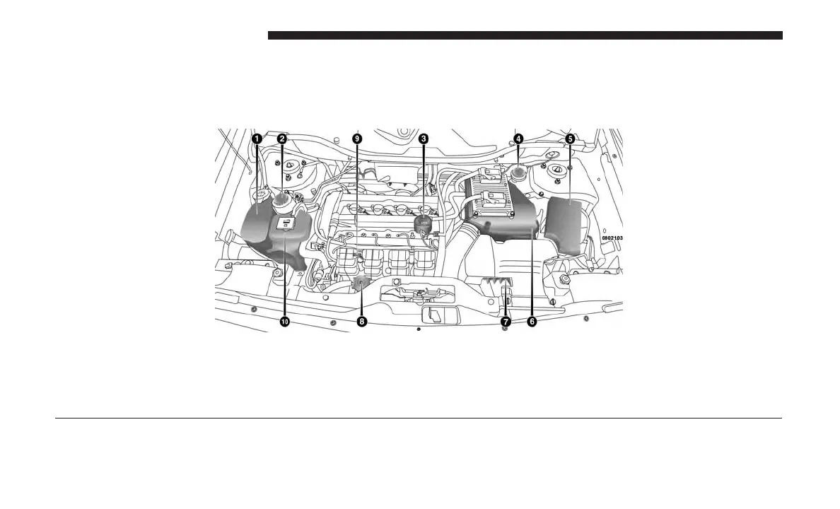 3 — Engine Oil Fill 8 — Coolant Pressure Cap