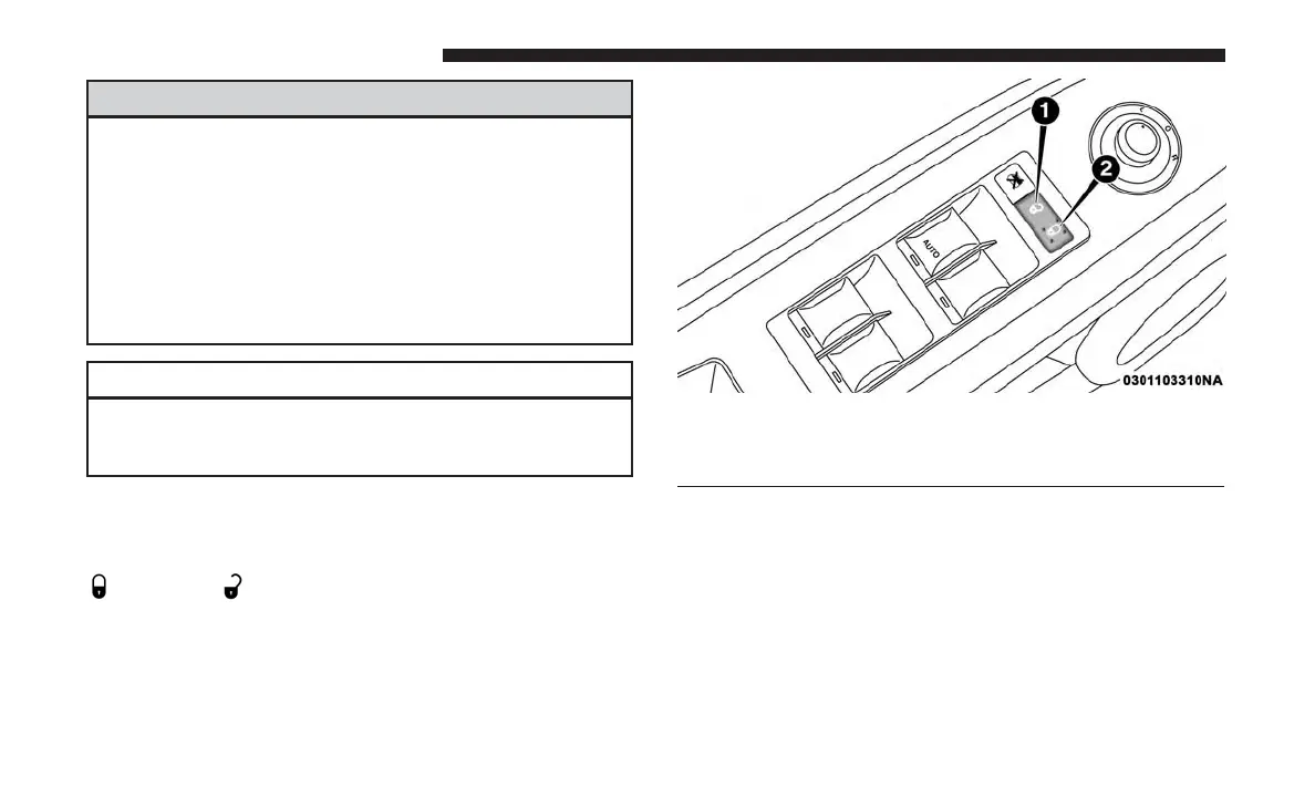 front passenger’s door panel. Push these switches to lock