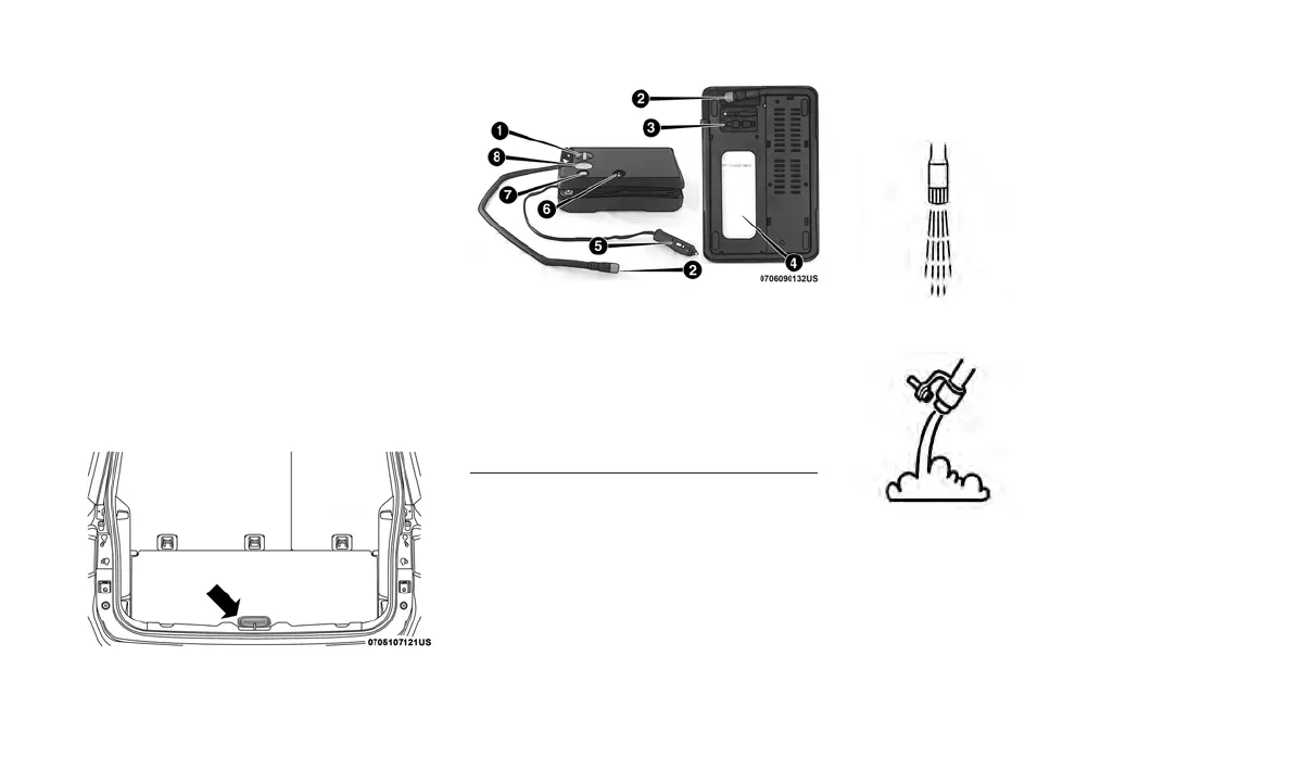 The Tire Service Kit is stowed under the load