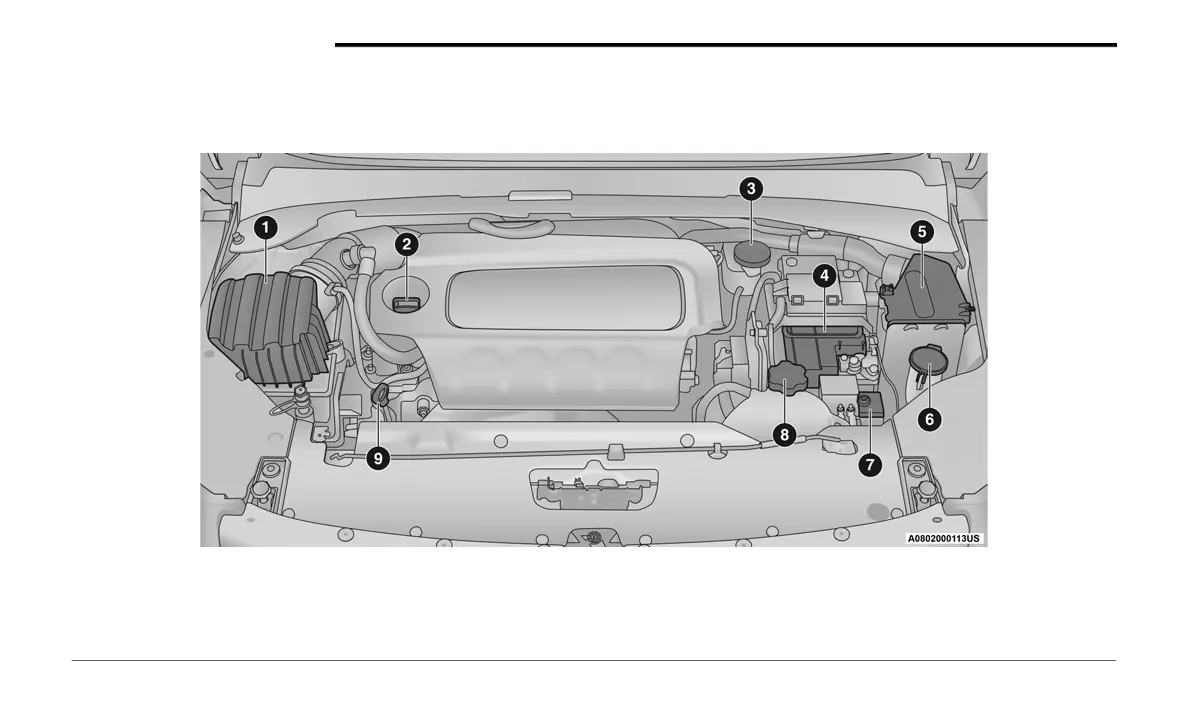 1 — Engine Air Cleaner Filter 6 — Washer Fluid Reservoir Cap