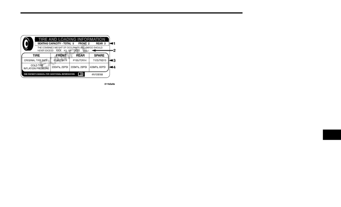 Tire and Loading Information placard. The