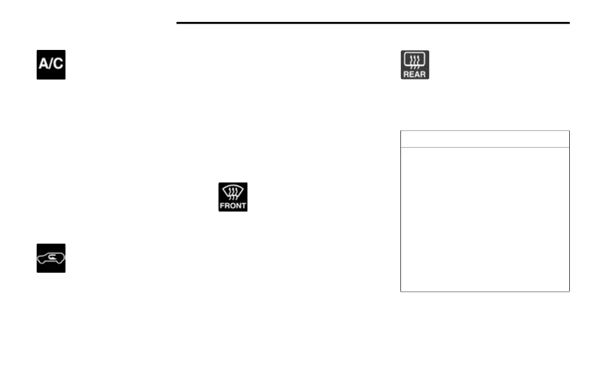 Defrost indicator illuminates when Front Defrost is