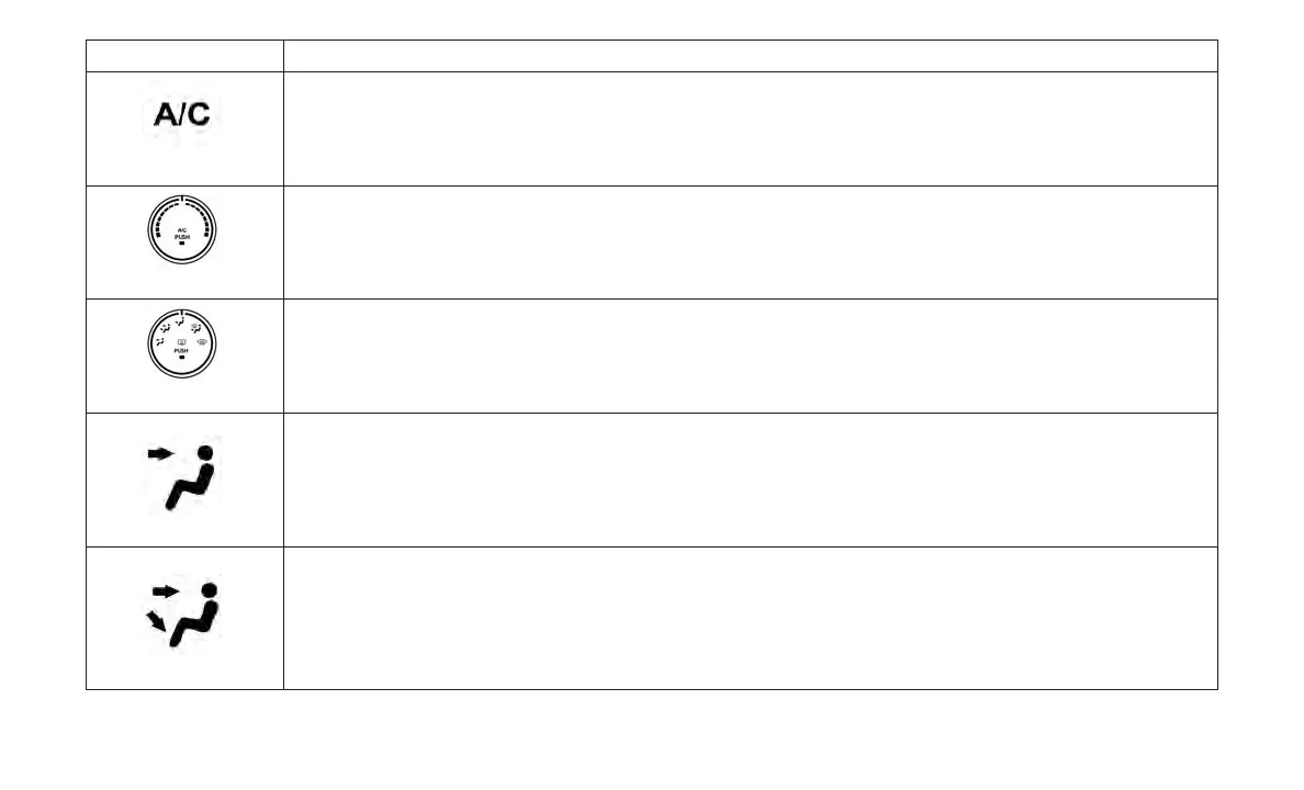 Press and release to change the current setting, the indicator illuminates when A/C is on. Performing this function again