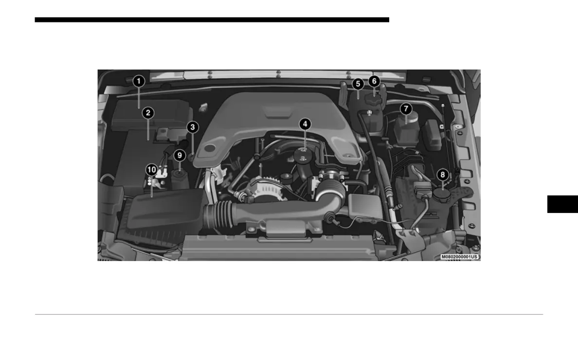 3 — Engine Oil Dipstick 8 — Washer Fluid Reservoir