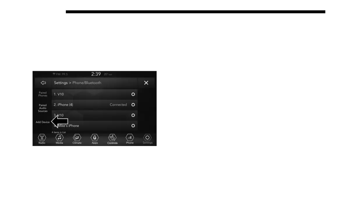 • Select “Paired Phones”, and then press the Add Device